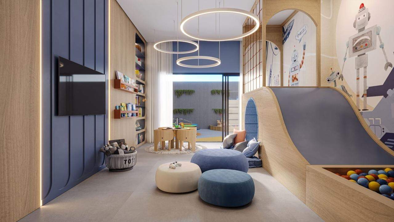 A área de lazer do Gran Vittoria e uma variedade de espaços para relaxar, são 2 pavimentos de lazer trazendo aconchego para toda sua família como: Piscinas adulto e infantil, espaço gourmet, playground, Mini Golf, praça de fogo, espaço fitness, brinquedoteca e muito mais.