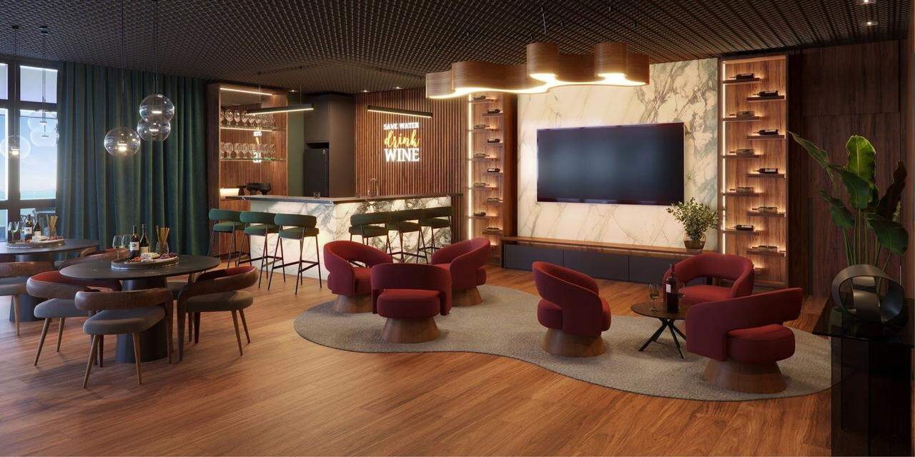 Além disso, você terá a disposição um verdadeiro universo para seu bem-estar. São 12.390m² de área de lazer, o maior home clube que terá: Piscinas adulto e infantil, cinema, sauna, Whisky bar, adega, sala de yoga, mini market , discoteca, bar, coworking, pub com boliche, áreas externas com espaços gourmet e muito mais.