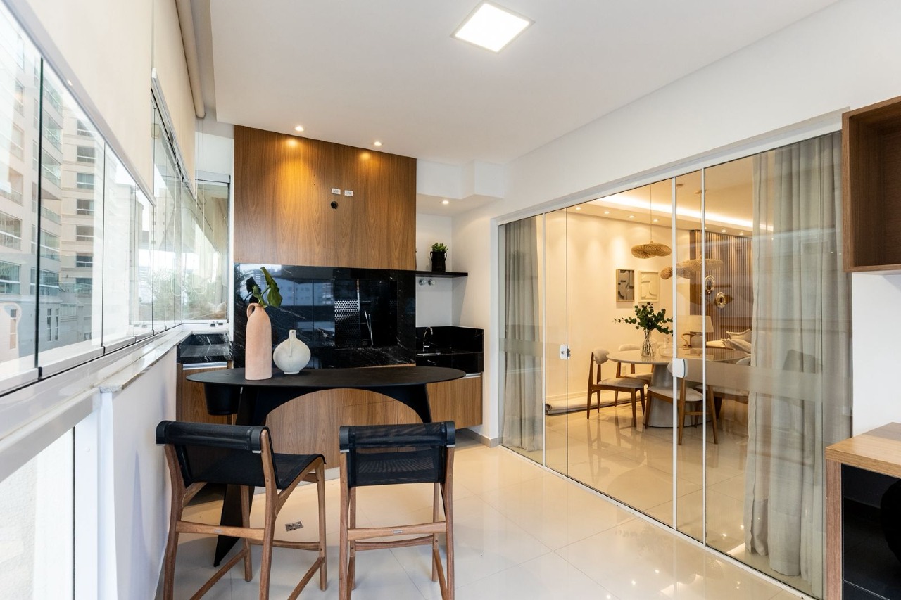 Sacada integrada e fechada com churrasqueira;