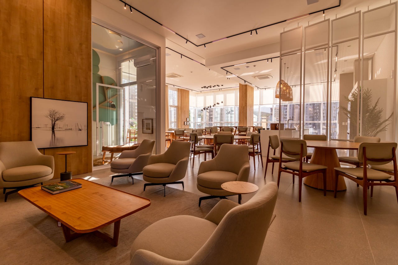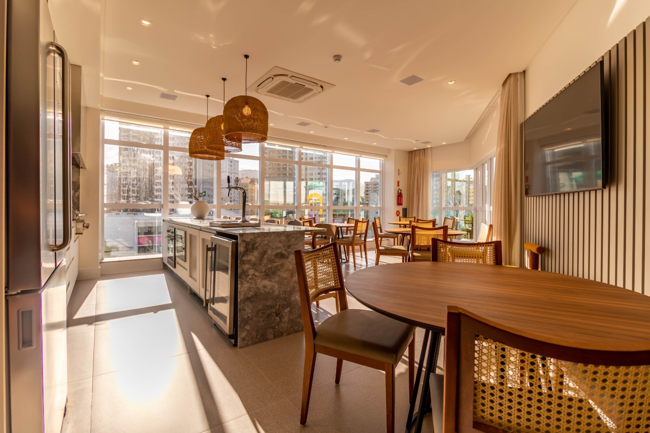 O empreendimento oferece uma área de lazer completa, pensada para todas as idades, com piscina infantil, academia, sala de jogos, playground, spa, sauna, salão de festas e lounge, criando o ambiente ideal para momentos de descanso e convivência.