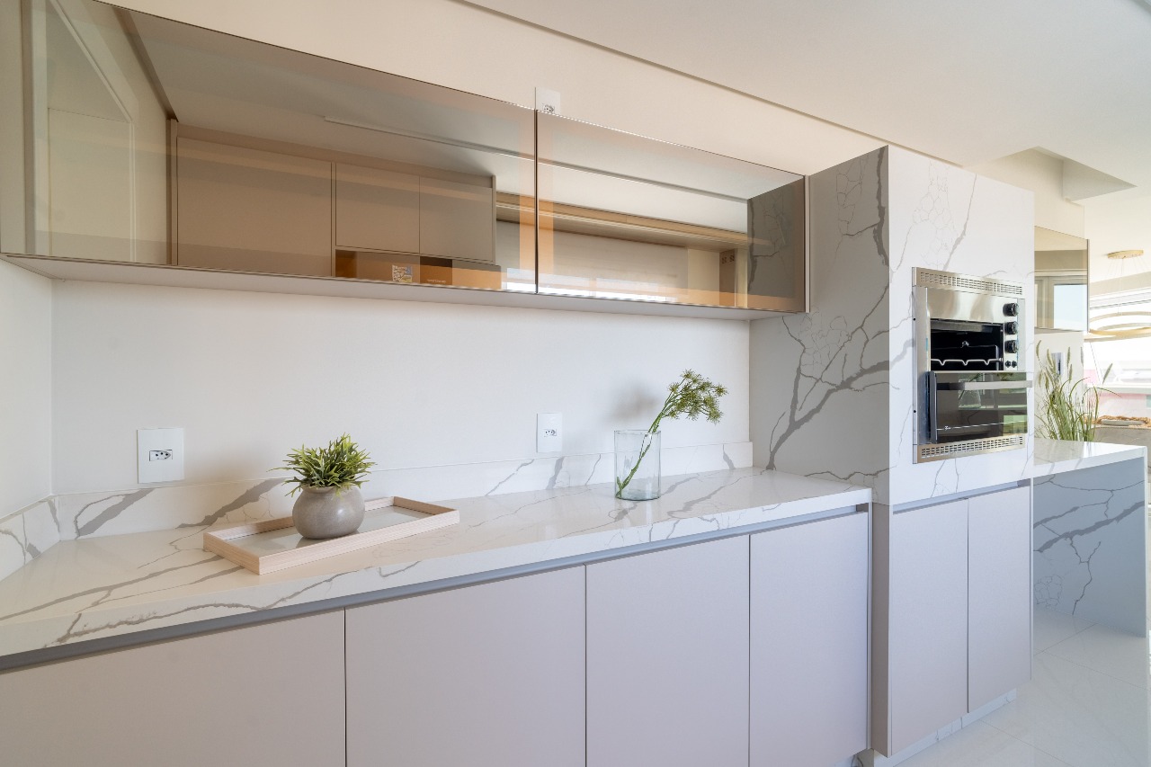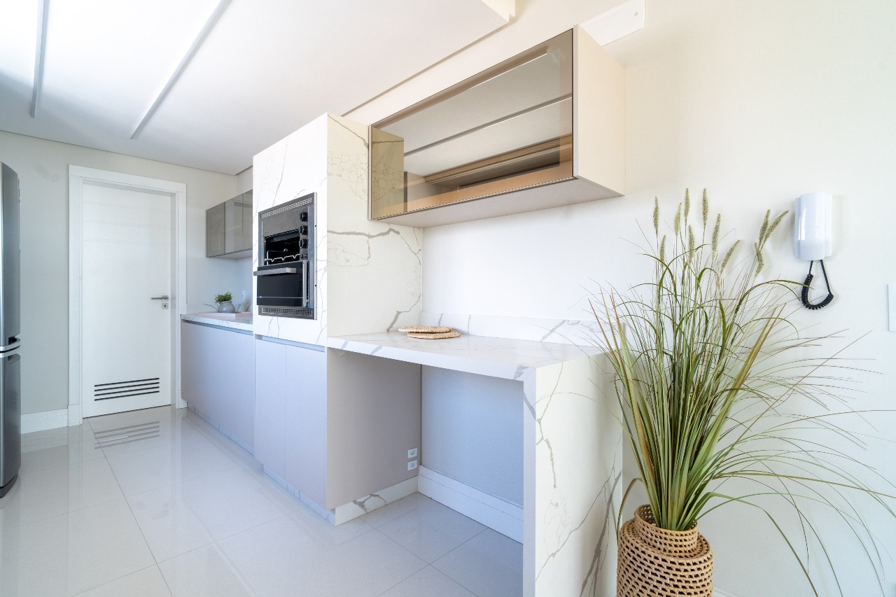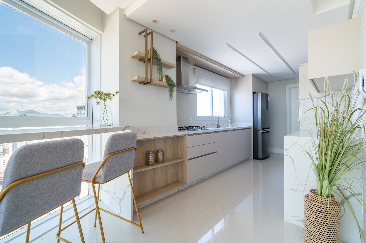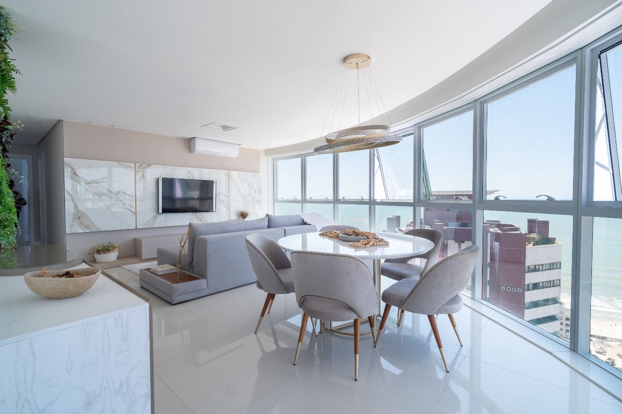 O apartamento está totalmente mobiliado, equipado e decorado. São 131,77 m² privativos, sendo dividido em: