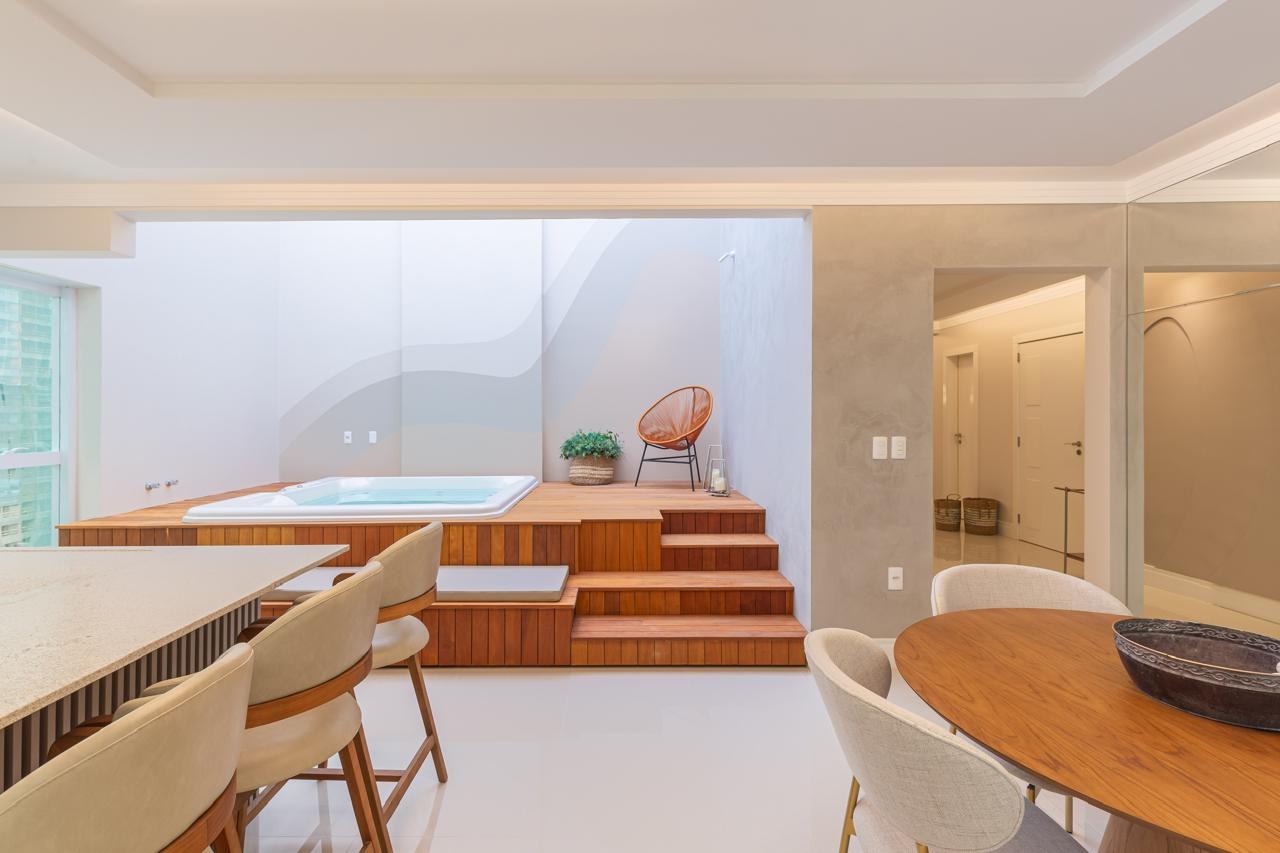 Nessa cobertura que não falta é iluminação natural... o ultimo andar tem os ambientes sociais integrados e conta com uma grande hidromassagem para aproveitar ainda mais os momentos marcantes com a sua família e amigos.